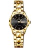 Binbond 5552 Luminous Black Dial Gold Stainless Steel Women's Quartz Watch
