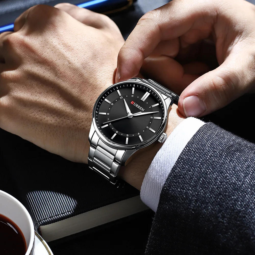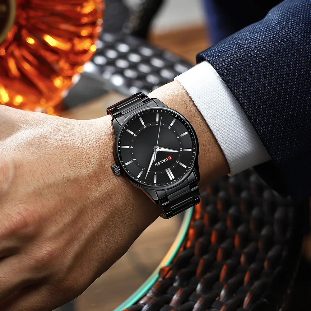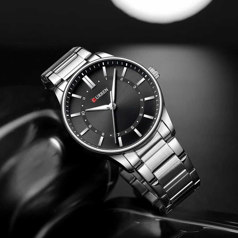 CURREN 8430 Stylish Men’s Quartz Wristwatch – Black & Silver Finish