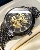 Design: Full black design with a luxurious skeleton dial, giving you a glimpse of the automatic movement.