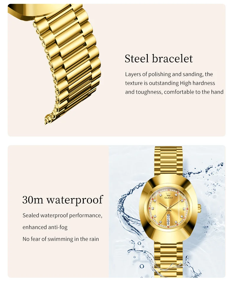 OLEVS 7017 মডেলটি একটি অত্যন্ত ফ্যাশনেবল এবং প্রিমিয়াম ডিজাইন করা মহিলাদের কুয়ার্টজ ঘড়ি। এটি স্টাইল, কার্যকারিতা এবং টেকসই ব্যবহারের চমৎকার সমন্বয়। এর ৩৬.৫ * ৪৪ মিমি ডায়াল এবং রাউন্ড কেস ডিজাইন এটিকে আধুনিক এবং আকর্ষণীয় করে তোলে। এটি স্টেইনলেস স্টিল ব্যান্ড এবং অ্যালয় কেস দিয়ে তৈরি, যা দীর্ঘস্থায়ী এবং শক্তিশালী।