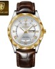 Poeadgar 615 - White Dial Gold Silver Leather Strap Men